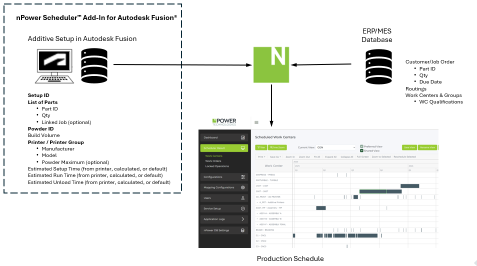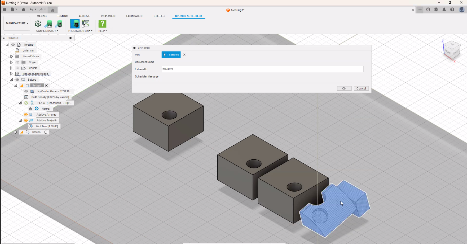 nPower Scheduler jest teraz dostępny jako dodatek do Autodesk Fusion, umożliwiając użytkownikom pełną synchronizację konfiguracji addytywnych stworzonych w Fusion z zamówieniami produkcyjnymi w ich systemie ERP.